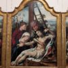 Lamentation sur le Christ mort. Un musulman tient le corps. Un grand prêtre au chapeau rouge et barbe bifide regarde la scène dans le panneau à gauche.