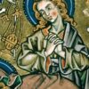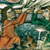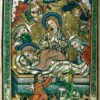Mise au tombeau du Christ. Deux juifs conservent leur chapeaux pointus, deux autres, en bas de l’image, leur laissent tomber.