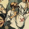 Au premier plan, un Juif avec trente pièces d’argent – comme Judas -.